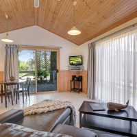 These spa cabins are fully equipped, spacious and are located on the beachside of our park but have views of our stunning river. The greatest feature of these Cabins is the spa baths in the bathroom. The Spa Cabins have private verandas with outdoor settings and BBQs. The Spa Cabins have reverse cycle A/C and free in-house movies, lounge/living area and complete dining setting. The Spa Cabins have TV, DVD Player, iron/ironing board, ceiling fans, hairdryer, CD player and radio. All linen is fully supplied.