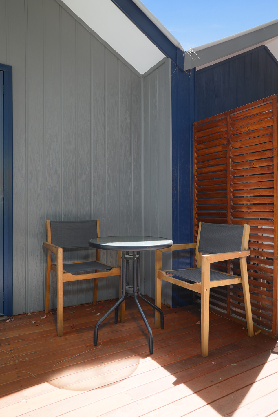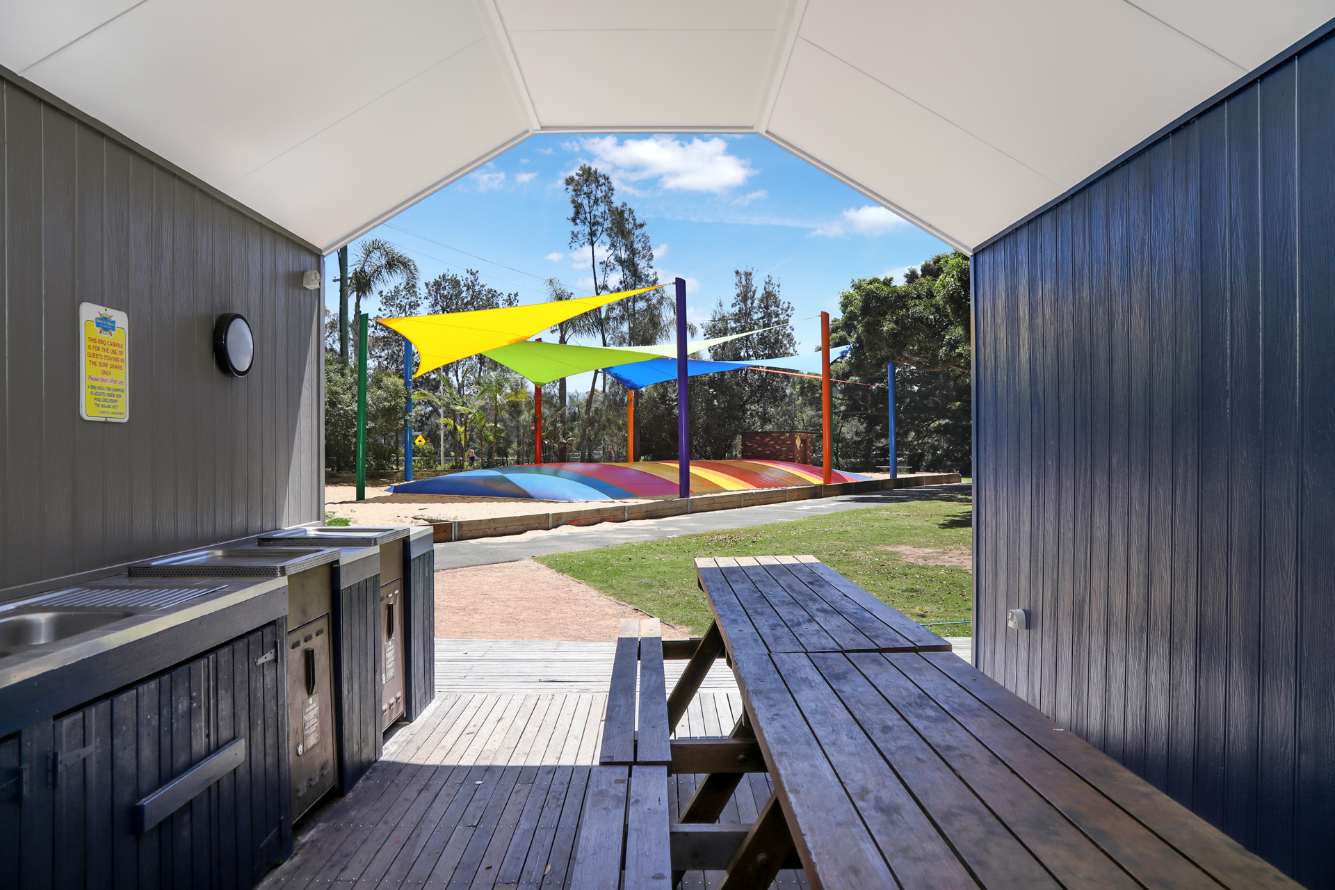 These are our groovy studio style accommodation with shared bathroom/ammeniity facilities. They include: TV, DVD player, in-house movies, wardrobe/storage, coffee and tea making facilities, microwave, bar fridge, ceiling fan, front and rear deck, shared BBQ area and reverse cycle A/C in each Shak.